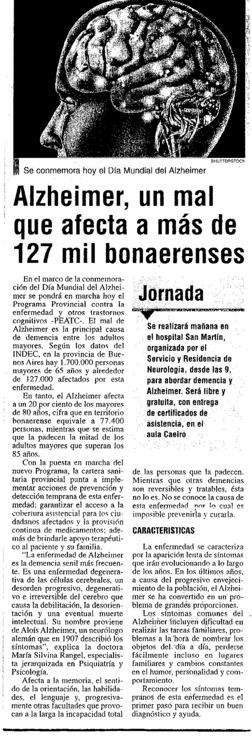 El Alzheimer, un mal que afecta a más de 127 mil bonaerenses